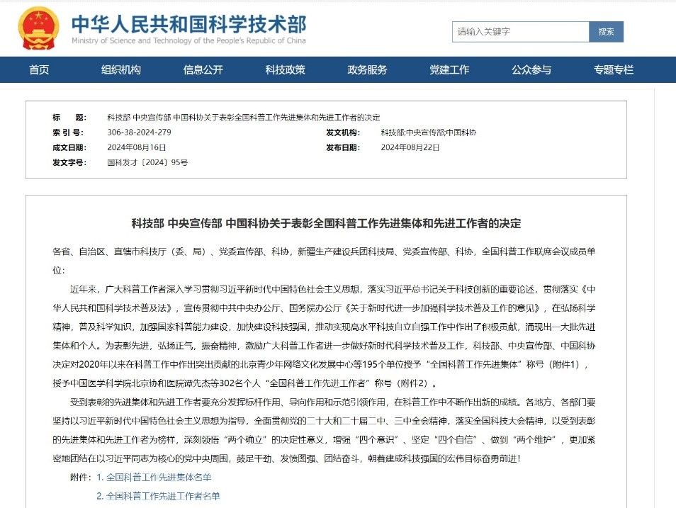 近日,科技部、中央宣传部、中国科协做出关于表彰全国科普先进集体和先进工作者的决定。我校91视频