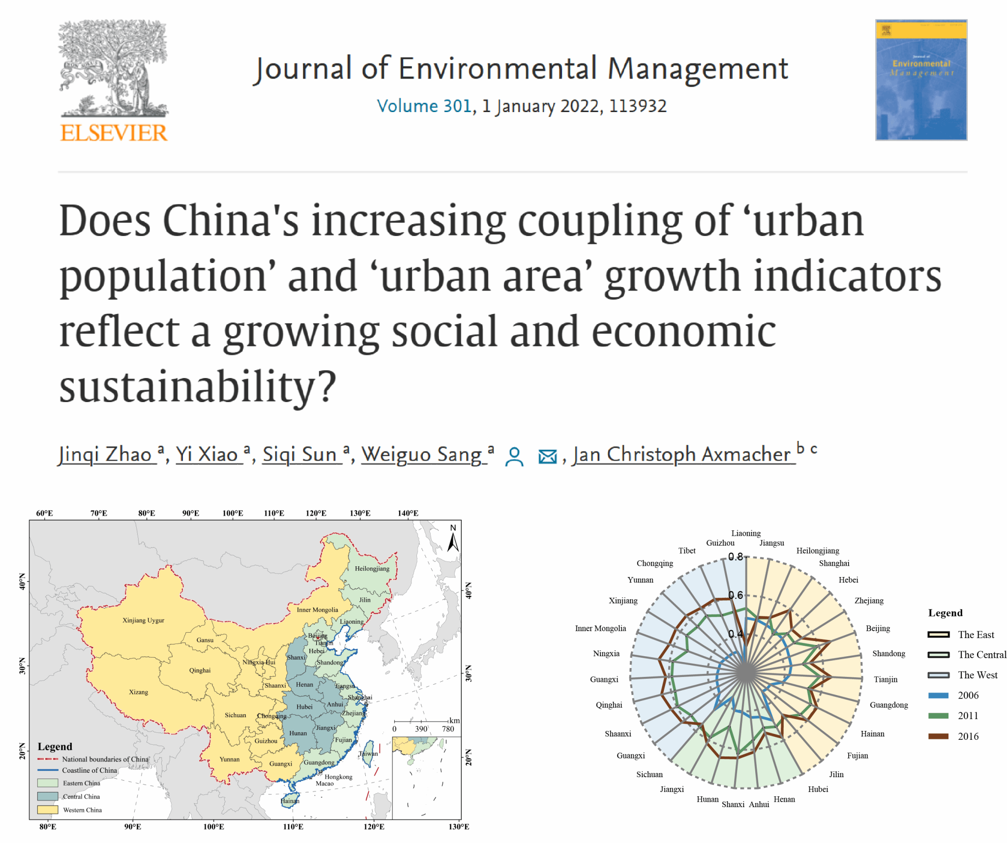 2. 2022年1月1日,关于“我国经济由‘高速发展’到‘高质量发展’的转变对于生物多样性保护的促进作用”的研究成果以“Does China's increasing coupling of ‘urban population’ and ‘urban area’ growth indicators reflect a growing social and economic sustainability?”为题发表在Journal of Environmental Management (中科院1区Top期刊,IF= 8.910),文章链接//doi.org /10.1016/j.jenvman.2021.113932。
