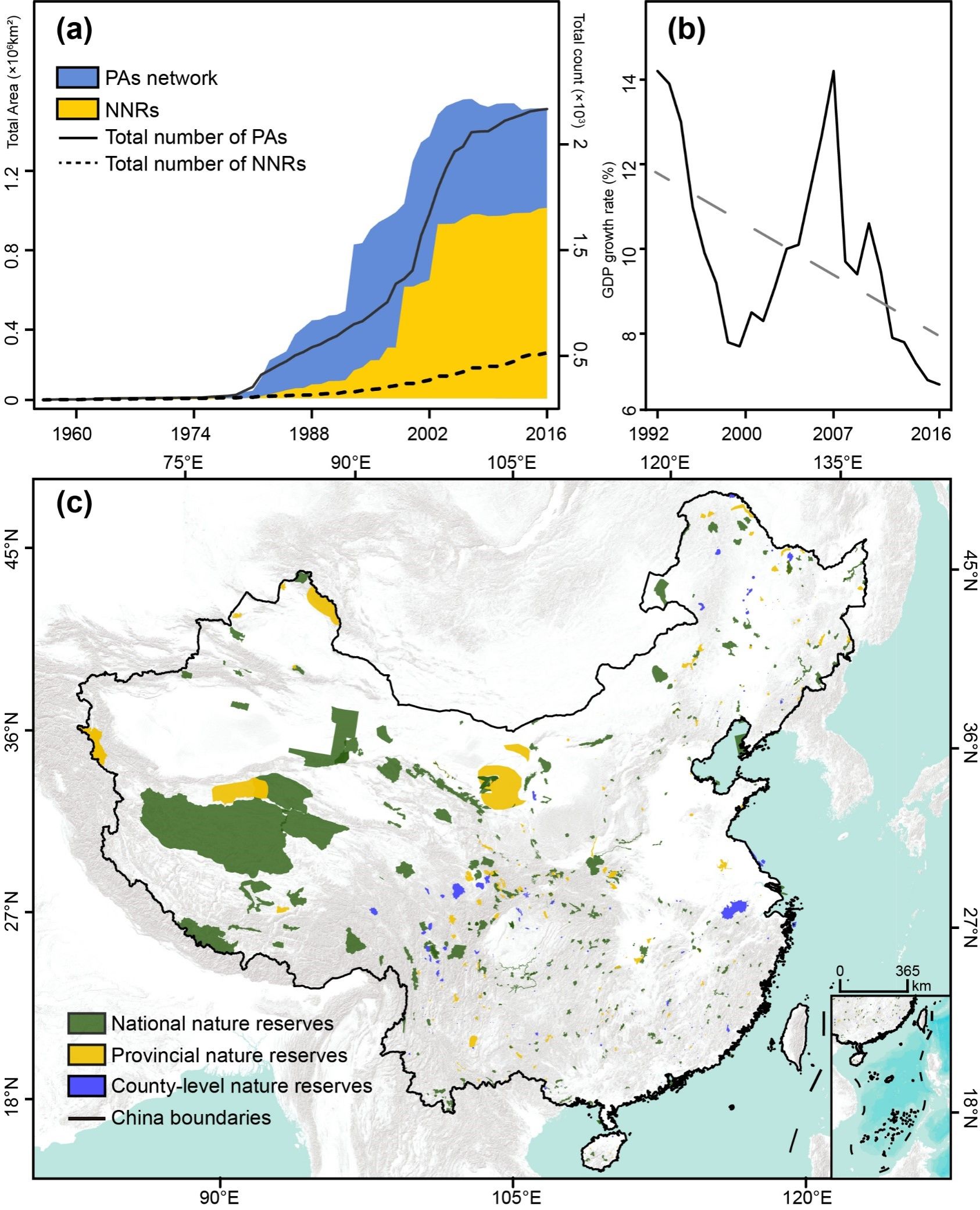 该研究以我国自然保护地网络为研究对象,结果表明社会经济发展与自然保护地的物种保护呈正相关关系,与当地居民的生计改善有密切关系,通过消除社区对建立保护地的抵触情绪,减少生态工程实施的阻力,可使生态旅游与生态补偿得到长远、积极的发展,有利于生物多样性保护的持续提高。