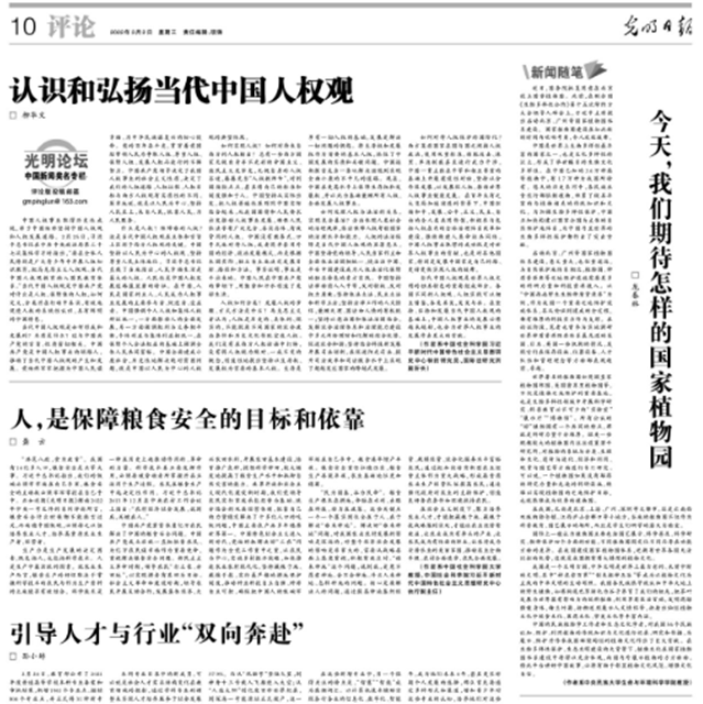 2022年12月24日,《人民日报》第7版“文化遗产”专栏发表了我校91视频 龙春林教授与中国科学院地理科学与资源研究所何思源博士署名的文章“为保护生物多样性贡献中国智慧”。