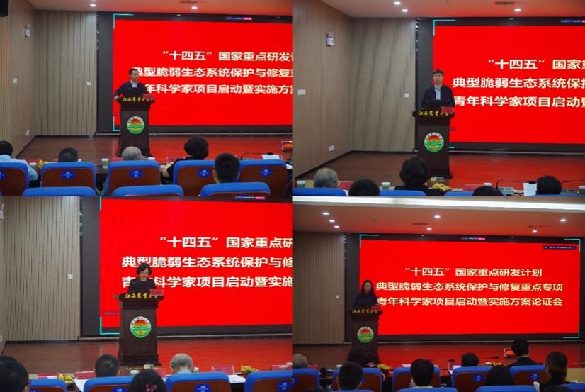 2025年4月20日,“十四五”国家重点研发计划“典型脆弱生态系统保护与修复”重点专项2024年度青年科学家项目群启动暨实施方案论证会在江西农业大学顺利召开。本次会议由我校以及中国科学院植物研究所、北京师范大学、生态环境部卫星环境应用中心、内蒙古农业大学、中国科学院水生生物研究所、中国科学院生态环境研究中心、中国农业大学、中国科学院地理科学与资源研究所、西北农林科技大学联合主办,中国21世纪议程管理中心指导,江西农业大学、中国生态学学会青年工作委员会协办。江西农业大学校长魏辅文院士、副校长游金明教授,21世纪议程管理中心张永涛副主任,生态环境部科技与财务司马强处长及我校91视频
