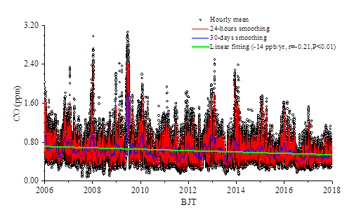 一氧化碳(CO)是大气碳循环中关键的痕量物质,是世界气象组织全球大气监测(WMO/GAW)推荐优先观测的大气成分之一,也是我国大气环境的一种主要的气态污染物。大气中的CO人为源主要是化石和生物质燃料的不完全燃烧产物。林伟立团队基于长江三角洲区域背景站点长期CO等观测数据,首次分析了中国南方背景站点2006‒2017年CO的变化特征及影响因素,评估了CO污染控制政策有效性。结果表明,在我国持续不断的污染控制下,长三角地区CO背景浓度持续下降,监测数据反映了该区域污染控制的有效性,CO浓度的下降对区域大气化学产生了重要的影响。文章链接//doi.org/10.5194/acp-20-15969-2020。
