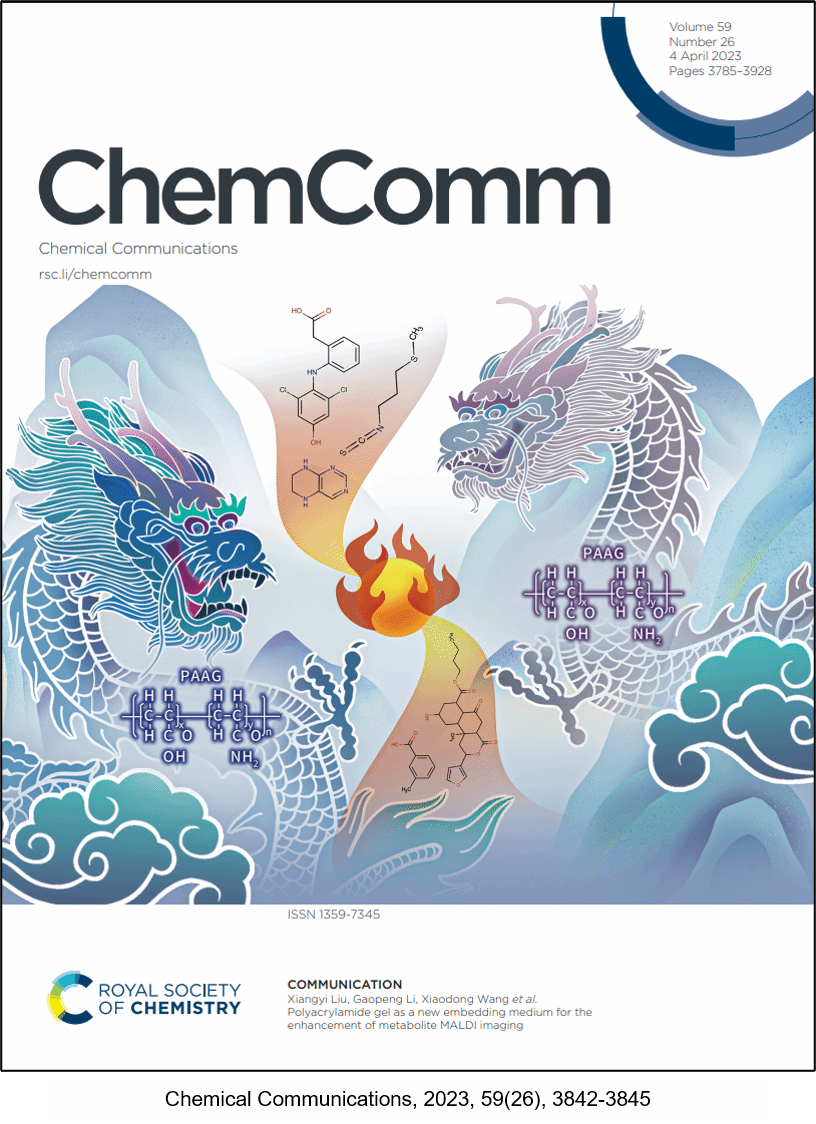 (质谱成像与代谢组学国家民委重点实验室)王晓东教授团队通过系统研究发现聚丙烯酰胺凝胶(Polyacrylamide gel,PAAG)作为一种新型包埋剂可显著提高MALDI-MSI前处理流程中生物组织样本中切片的质量,并增强小分子代谢物和脂质的原位检测及成像表征性能。这是在MALDI源质谱成像新方法开发领域取得的又一项重要进展,相关研究成果以“Polyacrylamide gel as a new embedding medium for the enhancement of metabolite MALDI imaging”为题,发表在分析化学综合权威期刊《Chemical Communications》(Nature Index收录)上,该研究论文同时被遴选为期刊封面文章(Front Cover)。这是王晓东教授团队继在分析化学顶级期刊《Analytical Chemistry》(2021, 93(35), 11920-11928, Front Cover)、《Chemical Communications》(2021, 57(82), 10707-10710, Back Cover)、《Chemical Communications》(2022, 58(5), 633-636, Front Cover)连续三次发表封面文章后,第四次入选期刊封面文章(Front Cover),91视频